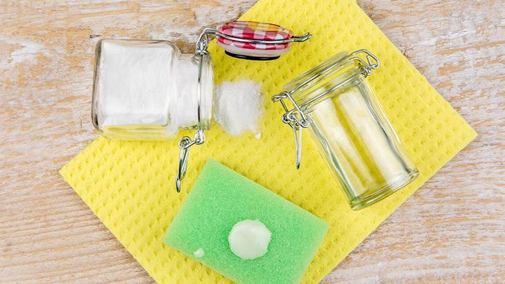 Bu işlemin ardından üzerine karbonat serpin ve yaklaşık 10 dakika bekletin. Bu işlemin yağı kumaşın derinlerinden yüzeyine çıkardığını göreceksiniz. Ardındankarbonatı nazikçe nemli bir bezle silin.